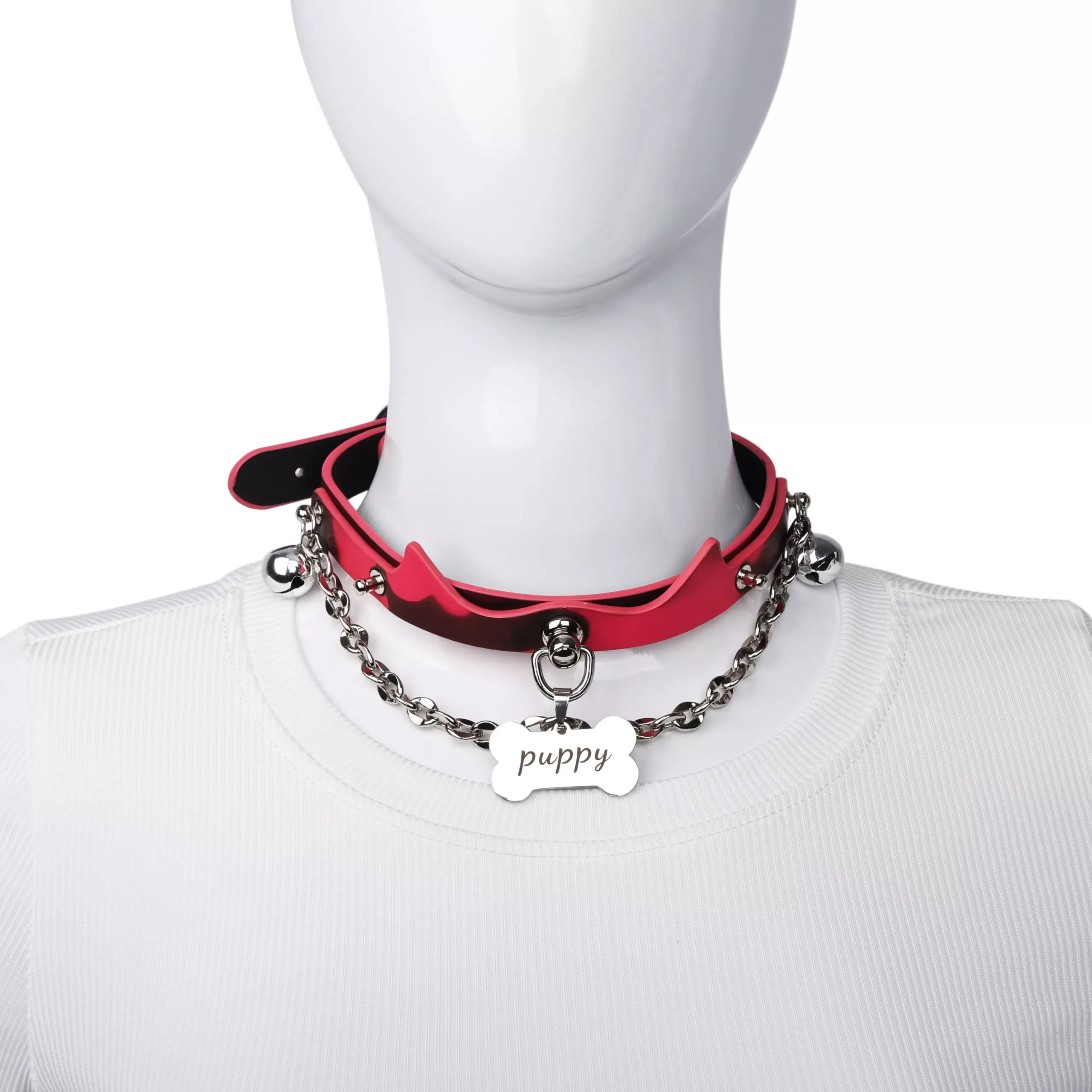 This choker features a unique color changing PU surface that reacts to temperature, shifting from deep black to vivid red. The dynamic effect creates a striking visual contrast that enhances outfit styling and mood expression.