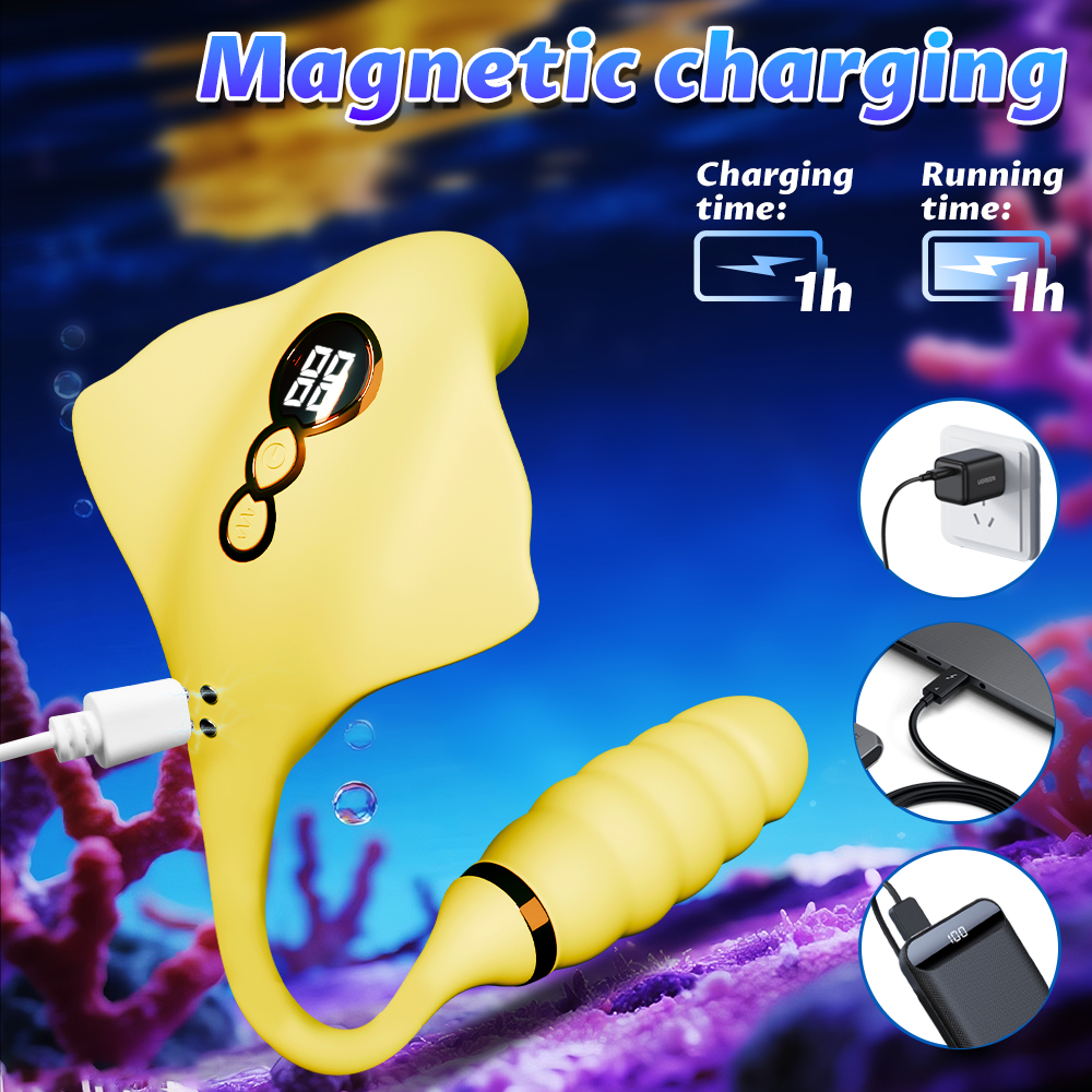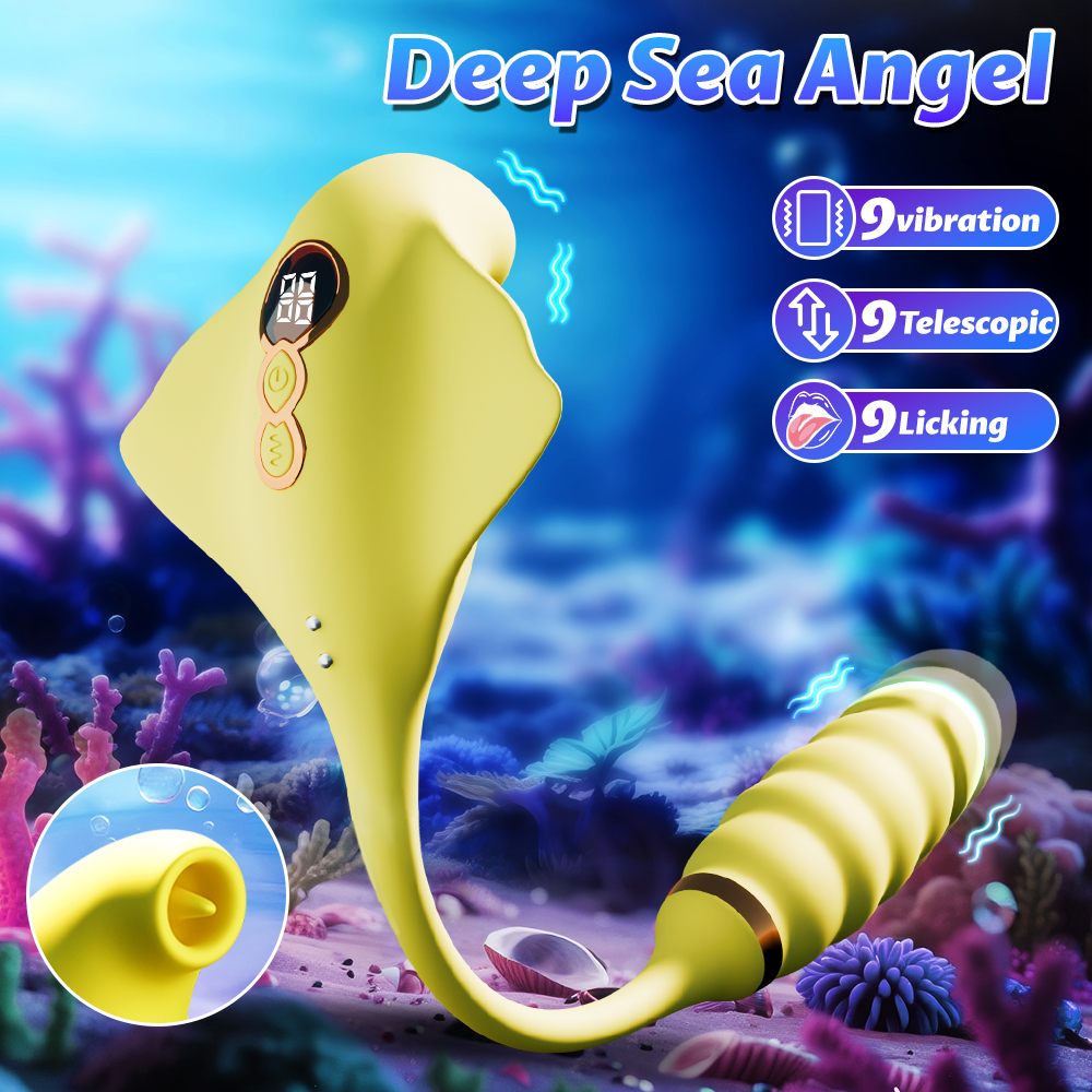 Retractable manta ray vibrator with sucking and licking, 9 modes, waterproof and quiet