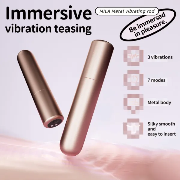 Compact metal bullet vibrator with 7 vibration modes, silky-smooth finish, USB rechargeable, and waterproof