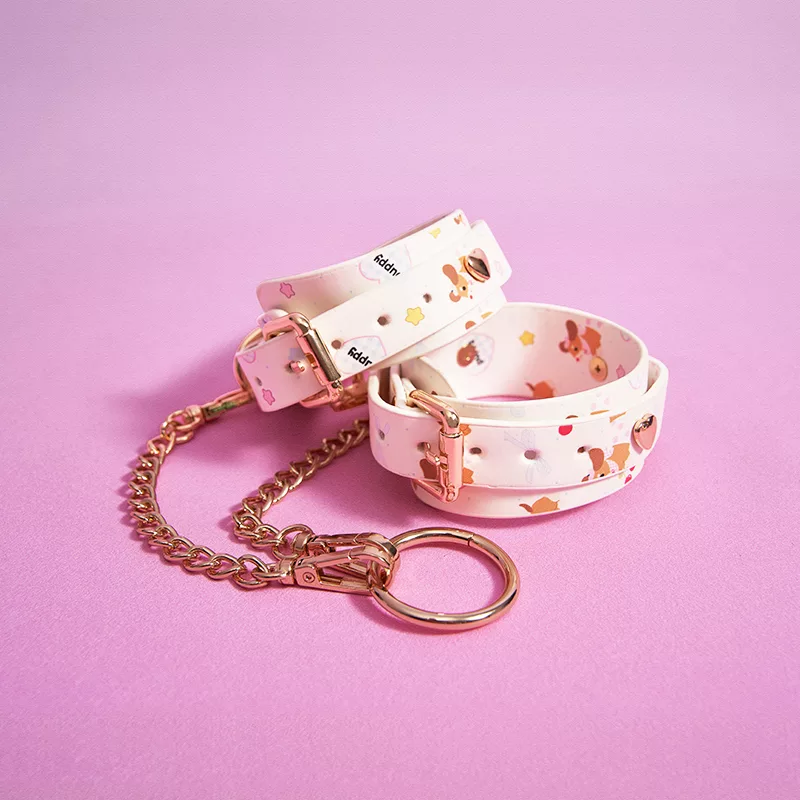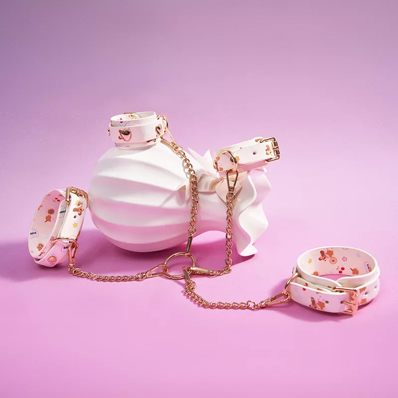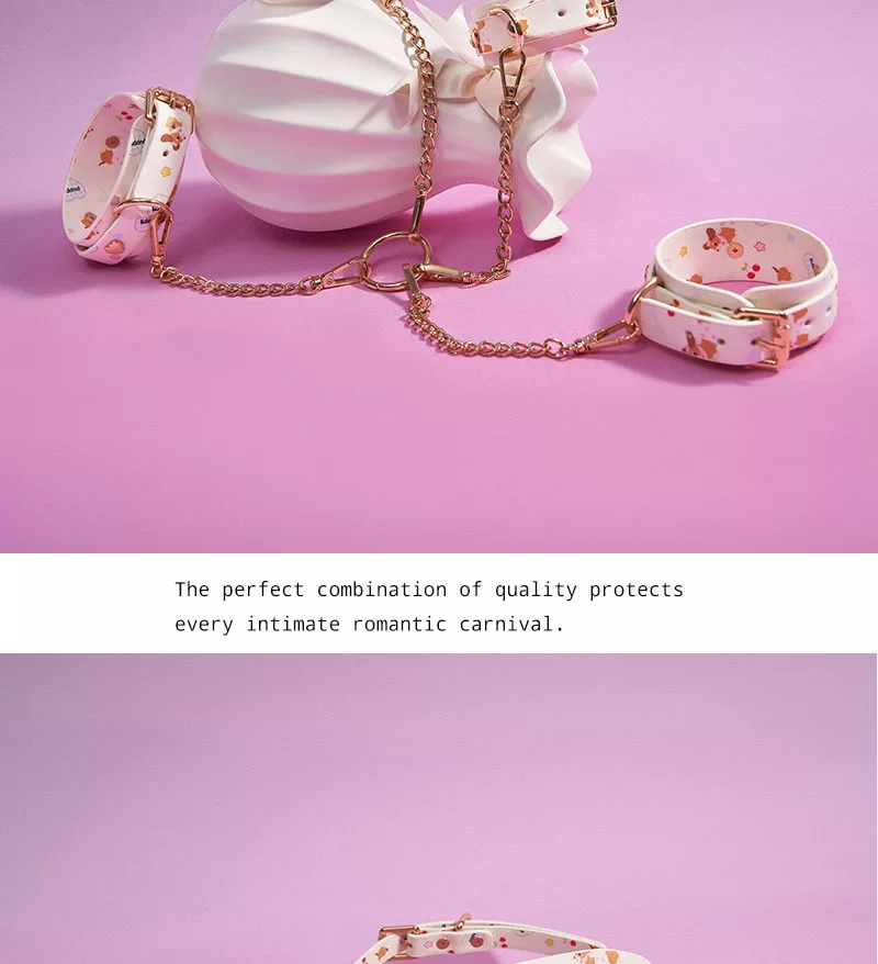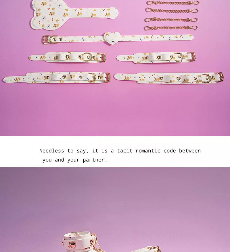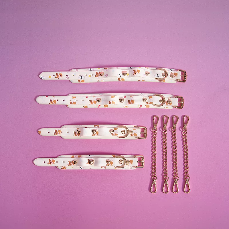 Adjustable collar, wrist and ankle bands, and eye mask for playful and charming moments